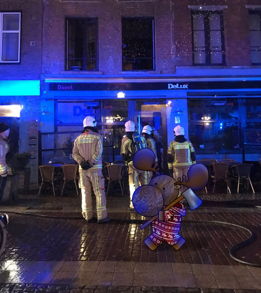 W/ Polie, we were on our way to the oldest brewery in Antwerp. If we hadn’t taken the moose we would never have heard the end of it.
