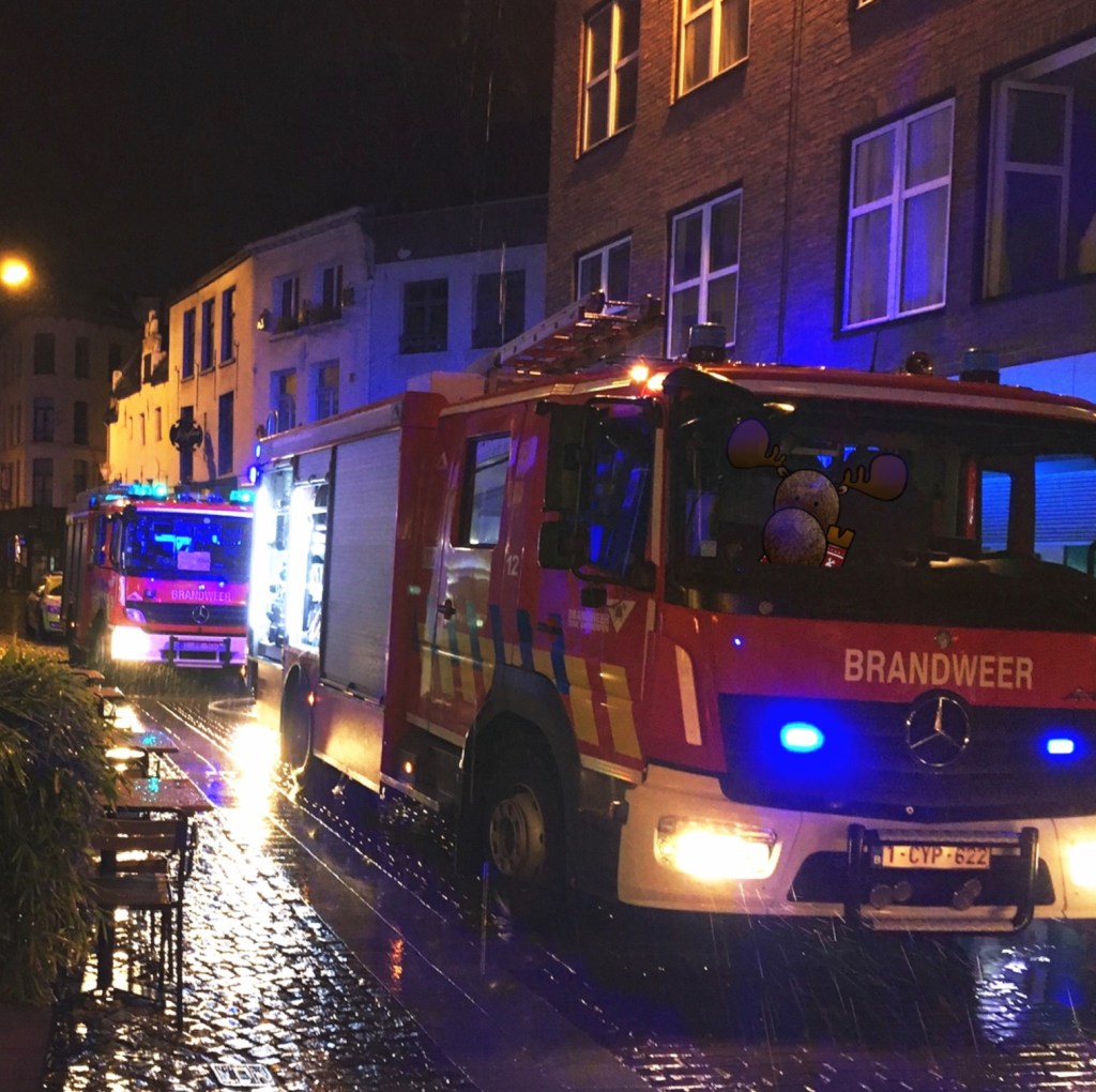 W/ And that’s where we spent the rest of the night. The firemen put out a fire in the basement started by an electrical fault. Fortunately the fire door had worked as this was an old building with a lot of wood.
